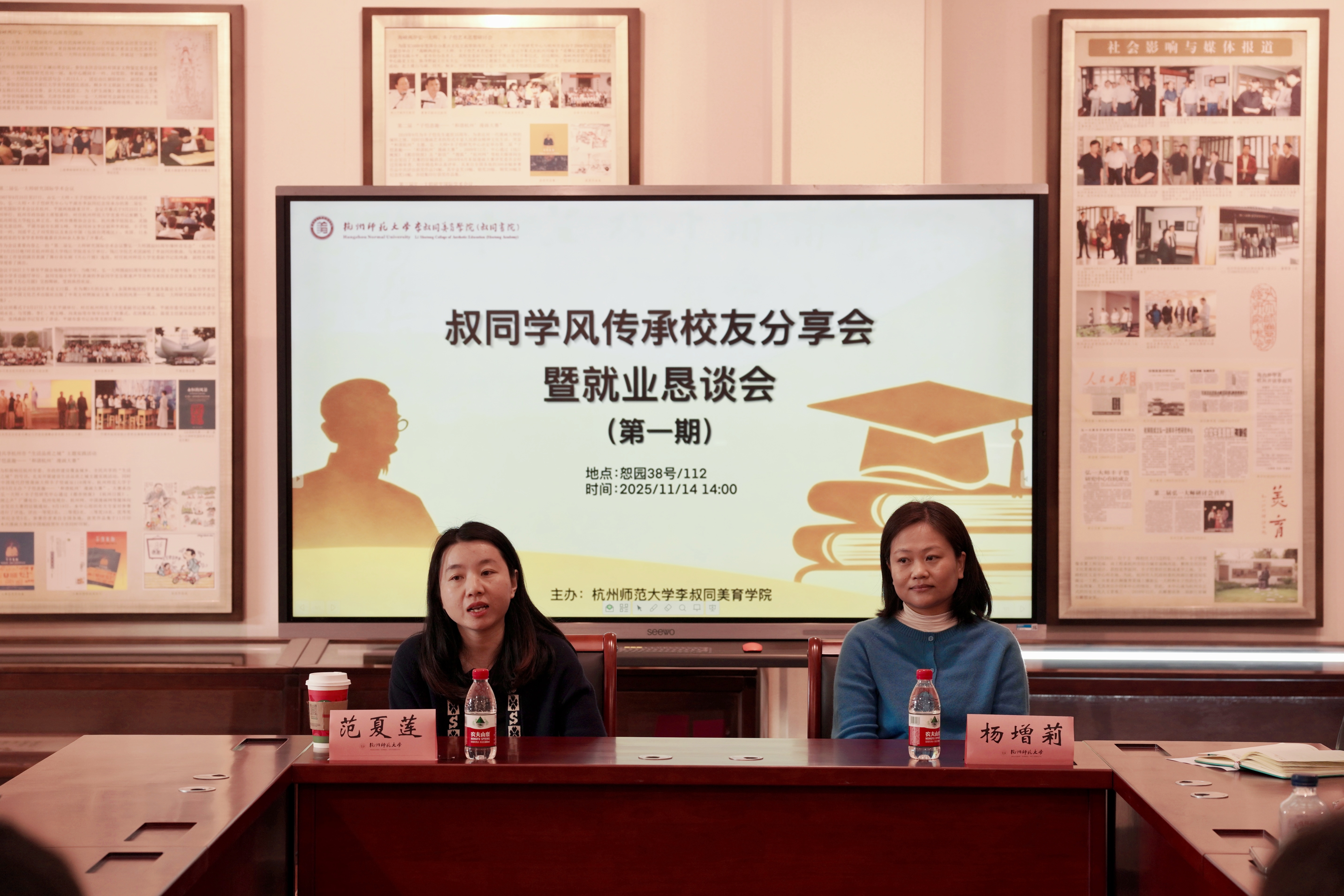 为搭建校友与在校学生的沟通桥梁,传承优良学风,明晰职业方向,叔同学风传承校友分享会暨就业恳谈会(第一期)于11月14日成功举办。本次活动特别邀请到两位优秀校友——西泠印社任职的范夏莲学姐与浙江越秀外国语学院教师杨增莉学姐,为美育学院研究生带来一场兼具思想深度与实践价值的分享交流。
