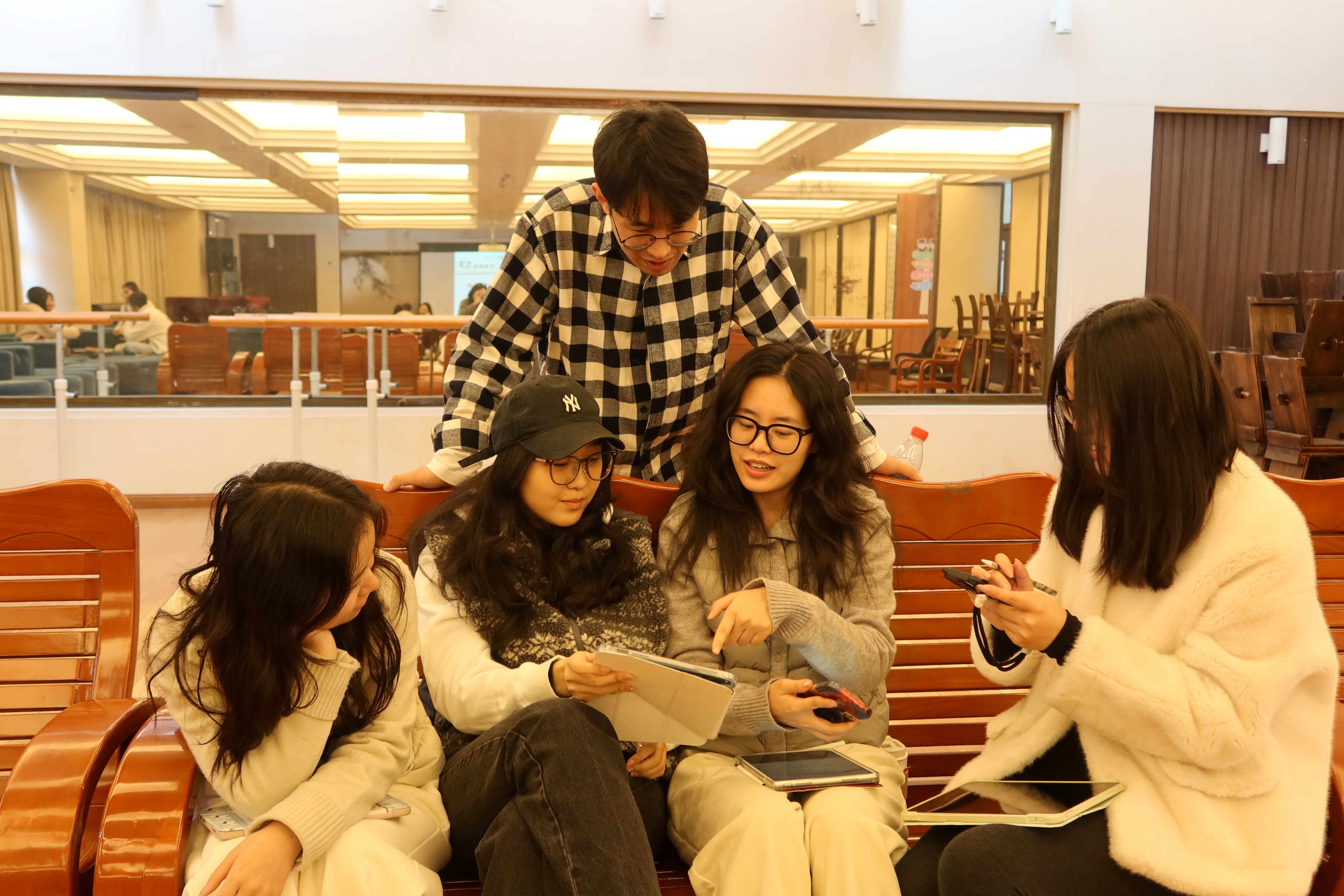 随后,同学们分组以丰子恺先生《警报作媒人》《狂欢之夜》《重建》三幅漫画,构思丰子恺艺术主题的短视频故事梗概。张老师深入各小组,针对大家创作中的难点与亮点进行一对一指导,助力大家打开创作思路。