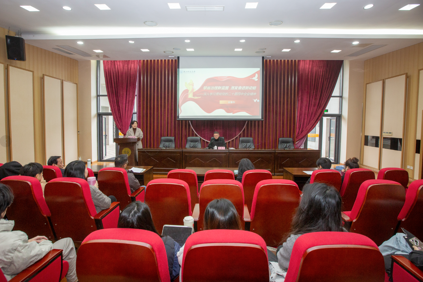 为深入学习贯彻党的二十届四中全会精神,推动全会精神入脑入心,精准把握其对新时代高校教育事业发展的指导意义,12月24日上午,杭州师范大学李叔同美育学院邀请学校国际教育学院副院长、团中央青年讲师团讲师、校党委理论宣讲团成员应维华老师开展全会精神宣讲,全体师生齐聚一堂,共学理论、共话担当。
