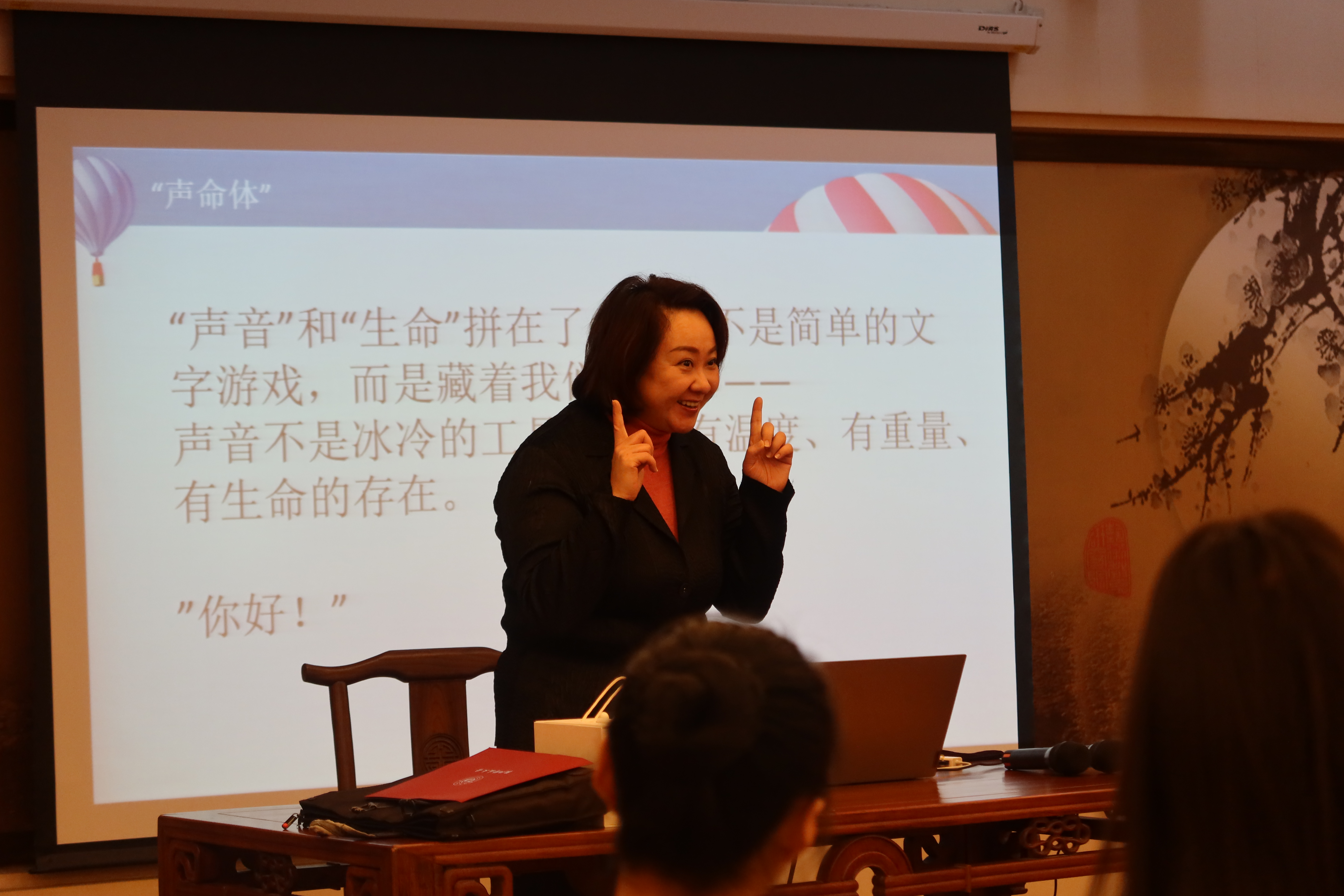 活动伊始,孙老师以“发现并塑造‘声命体’”为核心展开分享。她指出,声音并非单纯的声波传递,而是承载着情感、思想与个性的“生命载体”,而播音主持领域的“内三外四”的策略是打造独特“声命体”的关键。在“内三”技巧讲解中,孙老师结合自身多年播音主持与教学实践经验,通过日常对话、不同受众场景模拟、自然景观描述等案例,生动拆解“内在语”“对象感”“情景再现”的核心逻辑,引导参与者体会表达的层次感、针对性与沉浸式效果。