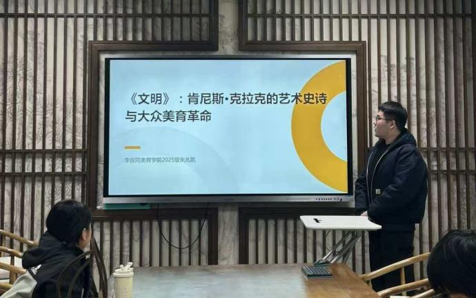 朱兆凯带领听众回顾了艺术史学家肯尼斯·克拉克的经典纪录片《文明》。他阐释了克拉克如何通过媒介将高深艺术史娓娓道来,使之飞入寻常百姓家,并由此思考在当今媒介环境巨变下,普及美学教育的新可能与新路径。