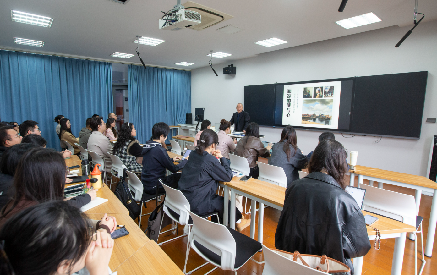 11月10日下午,李叔同美育学院“白阳讲坛”第三讲在仓前校区恕园38号楼206开讲。著名美学家、文化批评家,清华大学哲学系教授、博士生导师肖鹰教授以“画家的眼与心——维米尔绘画的诗意”为主题,为学院师生带来了一场兼具学术深度与人文温度的精彩分享。