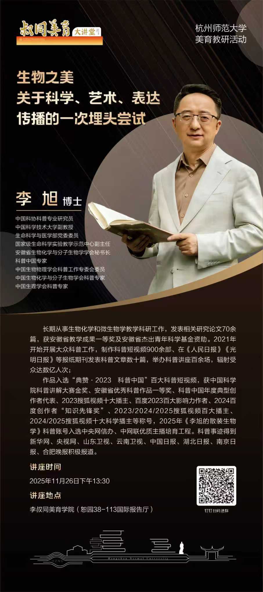 【叔同美育大讲堂】李旭主讲《生物之美:关于科学、艺术、表达传播的一次埋头尝试》