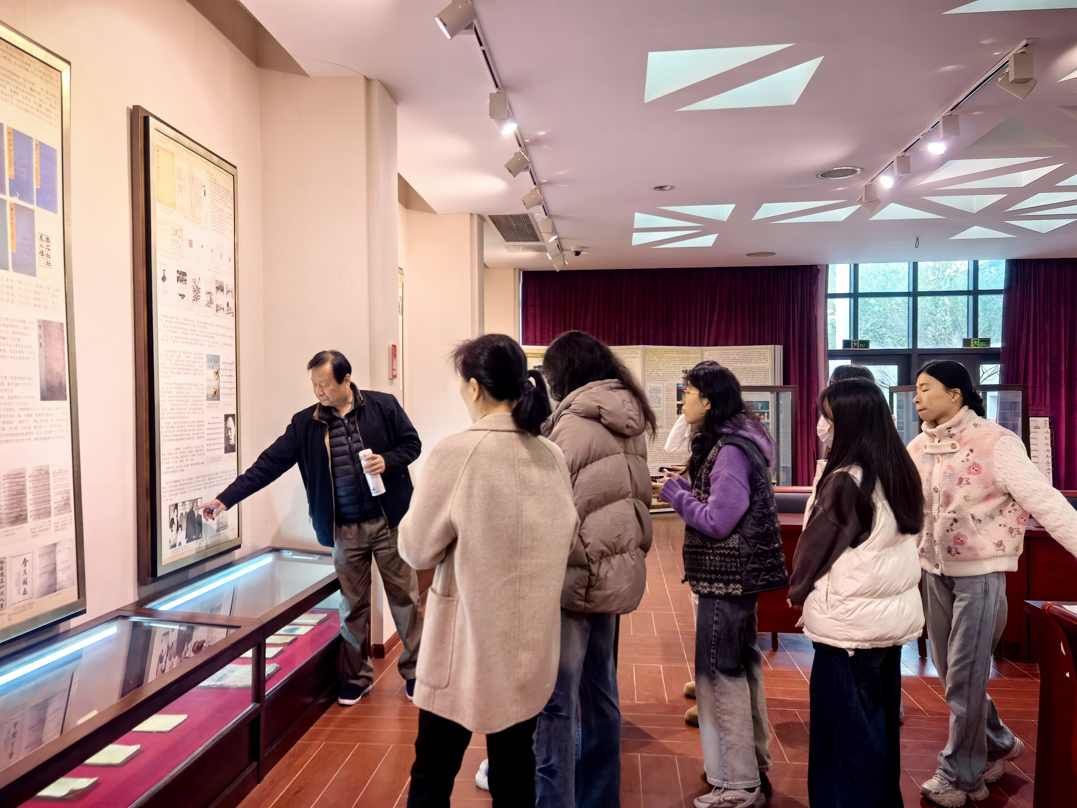在讲解内容方面,陈星教授提炼出三大核心板块:一是学校百年校史与美育渊源,尤其强调1912年艺术教育起步的历史背景及其与经亨颐等人格教育思想的关联;二是杰出校友李叔同的艺术教育贡献及其开创的多个“第一”;三是学院长期以来形成的浓厚艺术氛围与传统,通过历史刊物、社团活动等具体载体予以展现。此外,他还就展厅中部分展板的更新、陈列内容的优化提出了专业建议,强调讲解内容应与时俱进,增强与当下师生之间的情感联结。